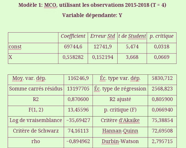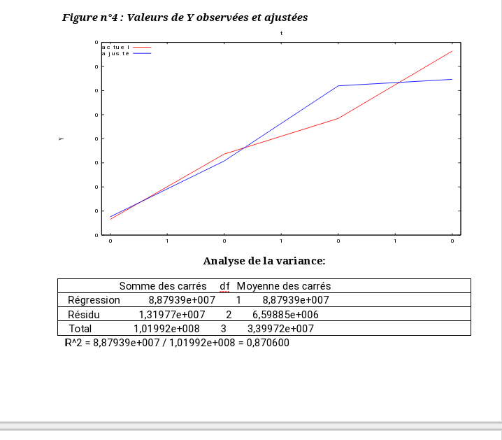 Nous proposons dans le cadre de cette analyse le test de Student et de Fisher, du fait que les deux ont donné une même conclusion d’où faute de temps, nous aurions dû le faire en nombre impair (c’est-à-dire 3,5,…) selon les principes économétriques.